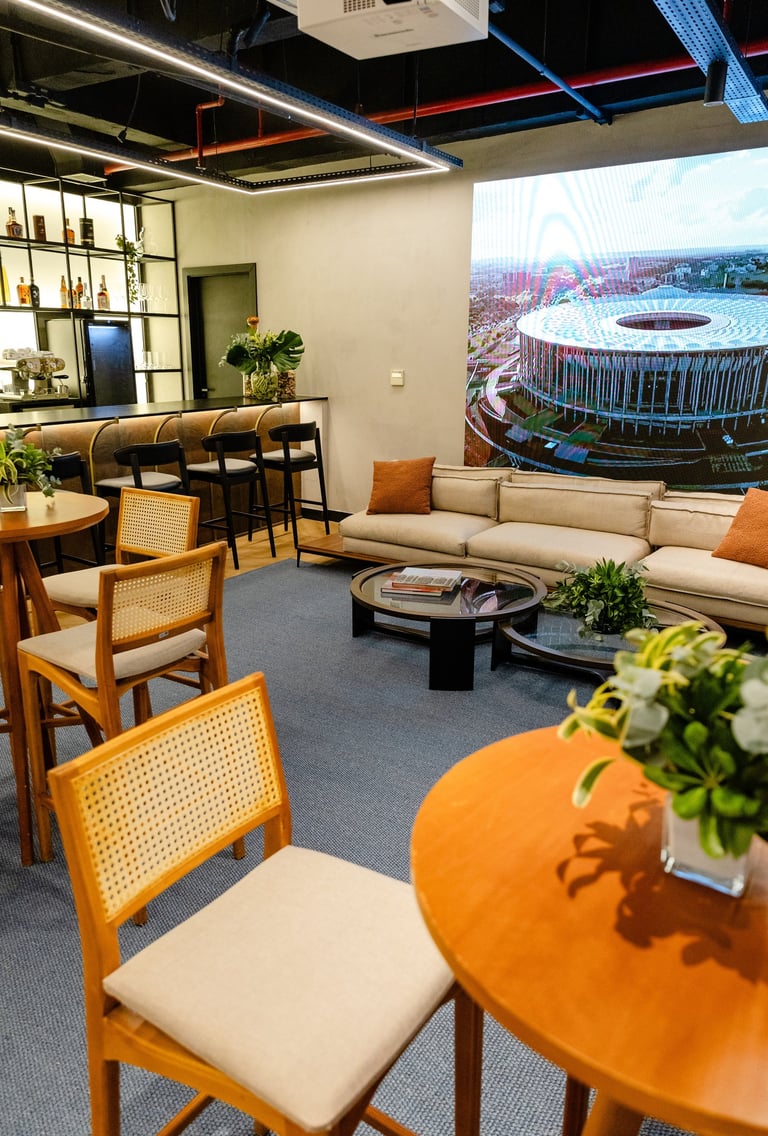 O InteRCJ é um espaço exclusivo para experiências corporativas e gastronômicas premium, localizado no Estádio Mané Garrincha, em Brasília. Mais do que uma sala de eventos, é um ambiente curado para encontros estratégicos, reuniões executivas, lançamentos e celebrações empresariais, combinando gastronomia diversificada, carta de bebidas do básico ao premium/grand reserve em ambientação elegante.