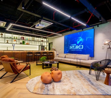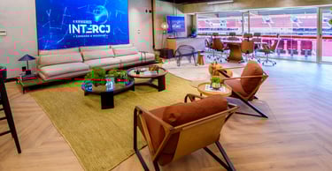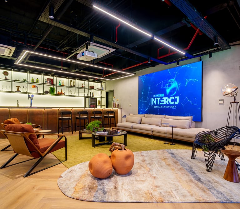 O Espaço InteRCJ é versátil e híbrido, adaptando-se com elegância a diferentes formatos - de reuniões intimistas a coquetéis dinâmicos - sempre marcados pelo nosso selo de excelência.