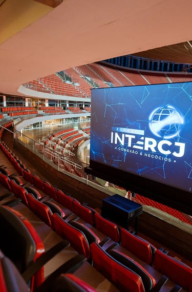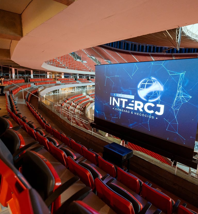 O Espaço InteRCJ conta com painel de LED, projetores internos e externos de altíssima resolução, sistema de som e acústica de excelência e Wi-Fi de alta performance.